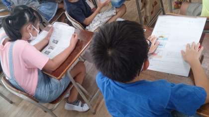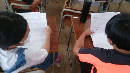友だちの書いたレポートを読んで、書いてある内容の中心や文章の構成を学んでいます。
