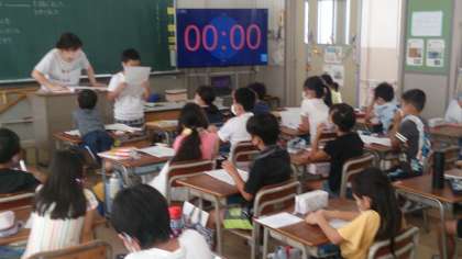 夏休みの課題レポートの発表会をしています。それぞれの自分が興味のあるテーマで、詳しく調べてきたことを発表しました。