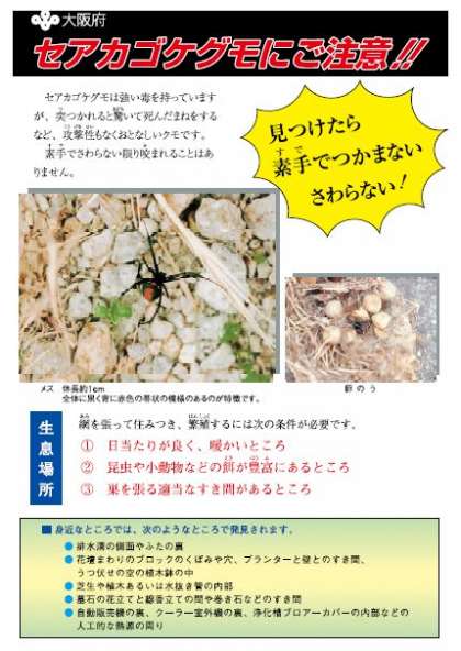 大阪府「セアカゴケグモご注意!」のリーフレット
