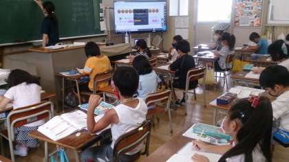 10を使って立式、計算する学習をしました。図や絵を見ながら文章題を理解しています。