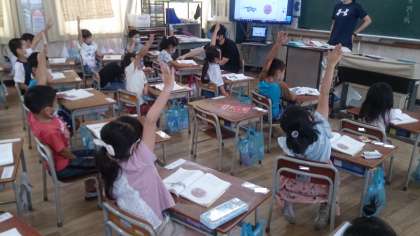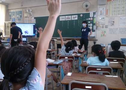 単元「どうやってみをまもるかな」を学習しています。登場する動物たちを確かめていきました。