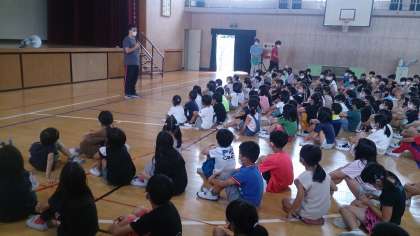 全校で防犯訓練をしました。学校内外での不審者に対する対応の方法について学びました。子どもたちは、とても真剣に訓練に取り組むことができていました。