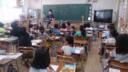 一と十の位に繰り下がりのあるひっ算の学習です。教育実習生が授業をしています。とても活発に発表しています。