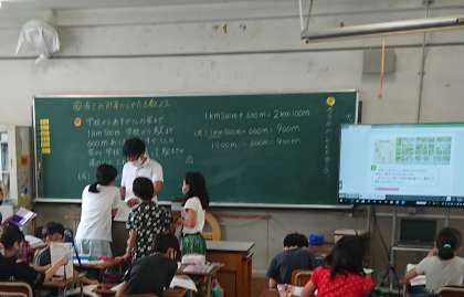 長さの学習をしています。今日は1Km500m+600mのやりかたを学びました。