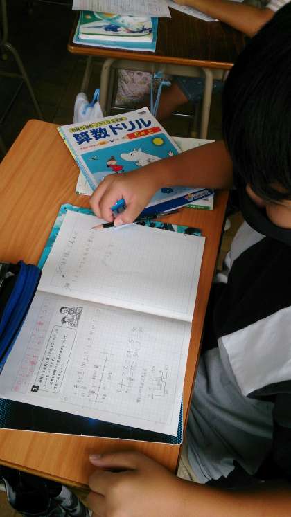 比の学習をしています。比をもとにして文章題を解いています。