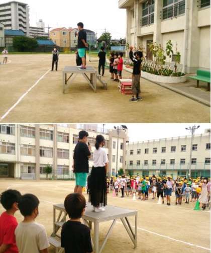 今朝は、児童集会がありました。集会委員会の子どもたちの司会進行でゲームを楽しみました。下の写真は、集会の集まりや退場時に、1年生をやさしく引率する6年生の子どもたちの様子です。