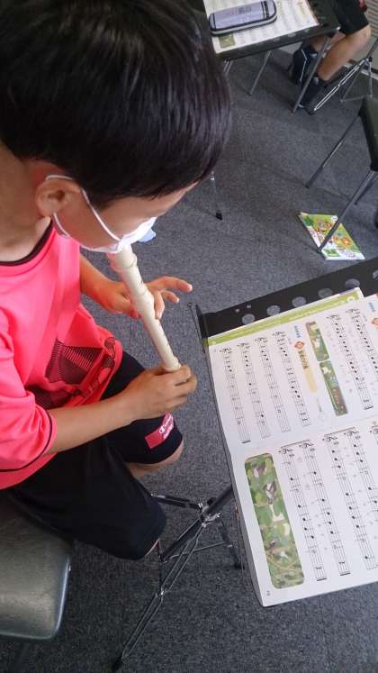 「メリーさんのひつじ」のリコーダー演奏をしました。リコーダーの運指を練習しています。