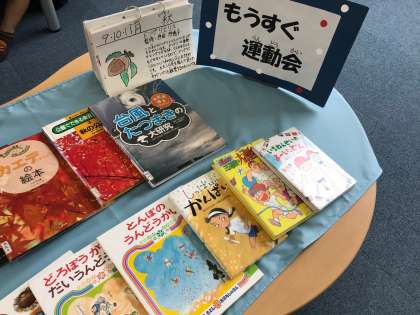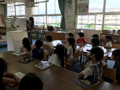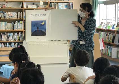 図書館補助員さんに、読み聞かせをしていただきました。題名は、「どんぐりたろうのき」です。