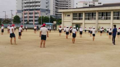 運動会の演技の練習をしました。位置の確認や基本的な演技練習をしています。