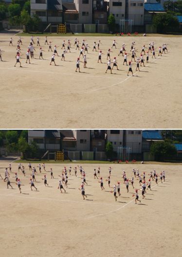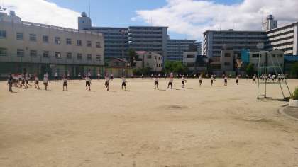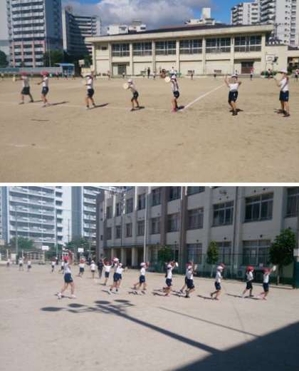 運動会の練習をしました。音楽に合わせて太鼓をリズムよくたたいています。