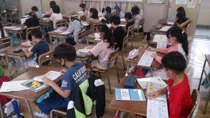 新出漢字の学習をしました。「茶」「麦」の読みや書き順などを学んでいます。