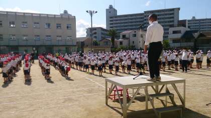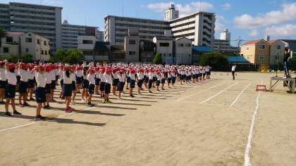 全体練習をしました。合同の準備体操などしっかりと練習できました。