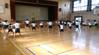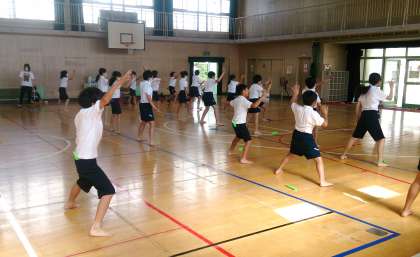 運動会の団体演技の練習をしました。大きな動きで迫力のある踊りです。