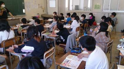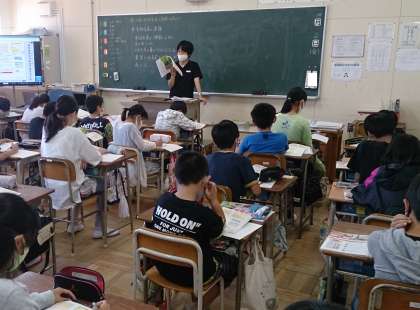 日本の食料生産の課題について学習しました。米の生産量や消費量などの現状について調べています。