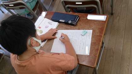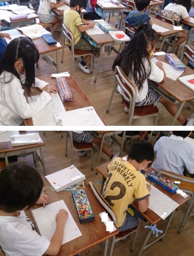 「ことばあそびうた」の学習しました。原文をもとにして、自分で創作しています。みんな真剣な表情です。