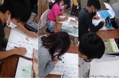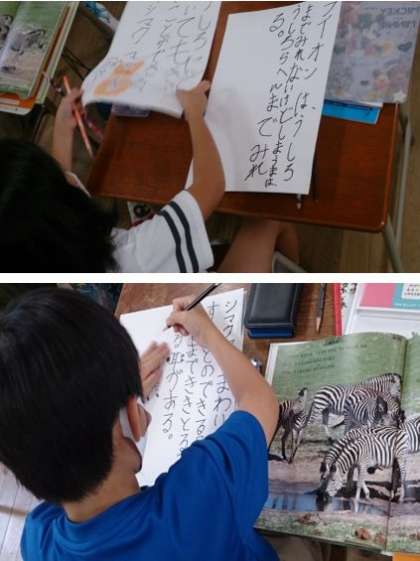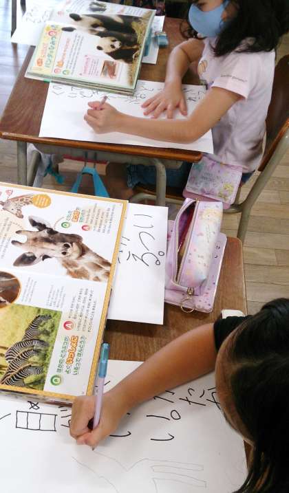 「どうぶつのひみつカード」の学習をしています。いろいろな動物のひみつがカードに書かれています。
