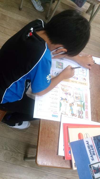 カタカナの学習をしました。「サ」「ラ」の書き方を練習しています。正しい鉛筆の持ち方も学びました。