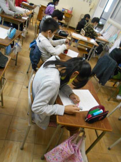 単元のまとめとしてテストをしました。とても集中して取り組んでいます。