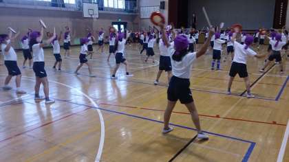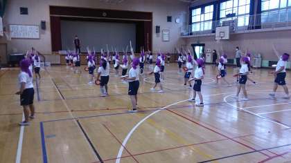 運動会前の仕上げの練習をしました。息の合った動きで踊っています。