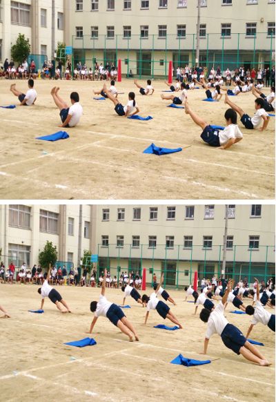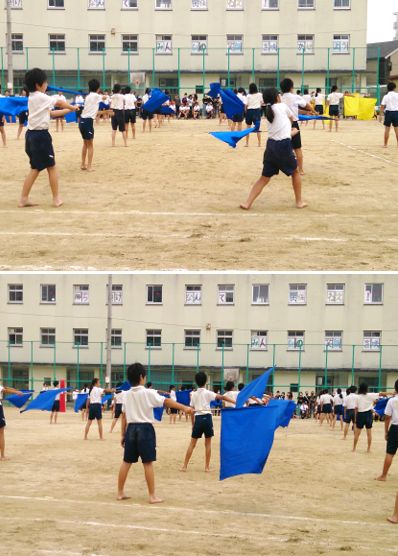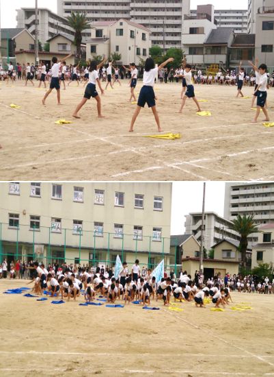 10月11日(日)、本日、爽やかな秋空の下、運動会が行われました。保護者の皆様には、分散での観覧や検温、参加証の持参等ご協力いただき誠にありがとうございました。心より御礼申しあげます。写真は、6年生の団体演技「Raise flag!〜ともに未来〜」です。