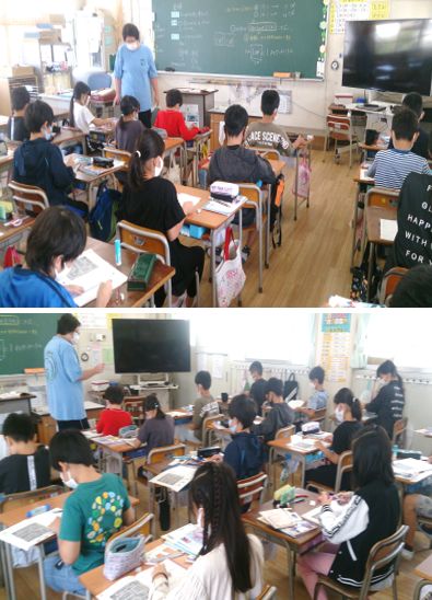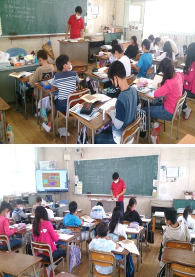 面積の学習に入りました。広さを比べるにはどうすればよいか、みんなで意見を出し合いました。
