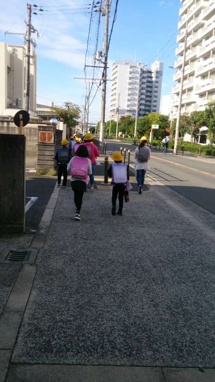 10月16日(金)、本日は、3年生の栄養指導があります。子どもたちはしっかりと交通ルールを守って元気に登校しています。