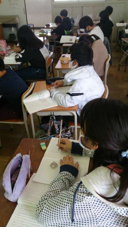説明文「和菓子の文化を受けつぐ-和菓子をさぐる」の学習をしています。和菓子の歴史や茶道との関係など学んでいます。