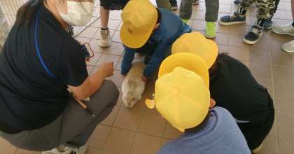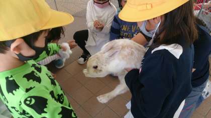 生き物とふれあう活動をしました。学校で飼育しているうさぎとの交流する中で、世話の仕方やうさぎの特徴、生命の大切を学んでいきます。