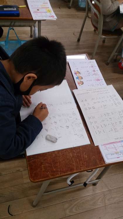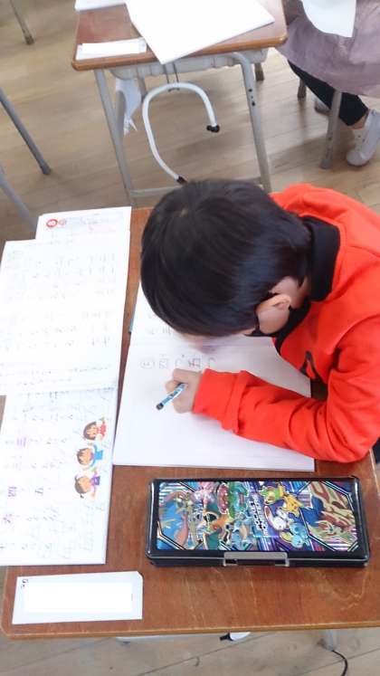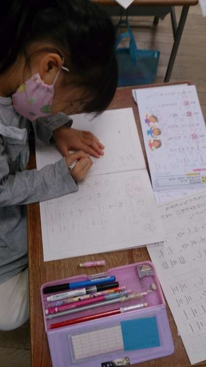 漢数字の学習をしました。「三つ」「四つ」などを丁寧に書いています。