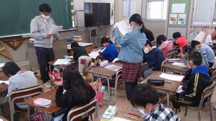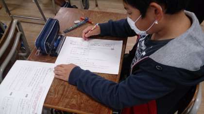 プリントで主語と述語の学習をしました。練習問題を熱心に解いています。