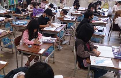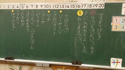 物語文「サラダでげんき」の学習をしています。「めあて」や発表した意見などを丁寧にノートに書いています。