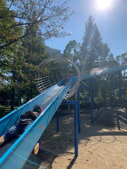 滑り台で楽しく遊んでいます。
