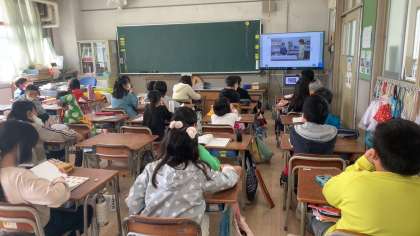 動画を見ながら、‟Do you like〜?"の表現を学んでいます。