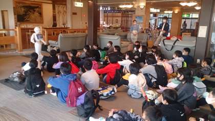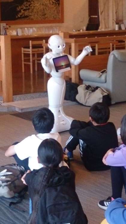 16:30頃、宿舎に到着しました。ペッパー君がお出迎えです。