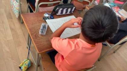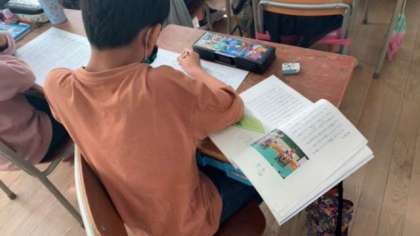 「パラリンピックが目指すもの」という説明文に取り組んでいます。はじめ、なか、おわりという文章の構成を考えています。