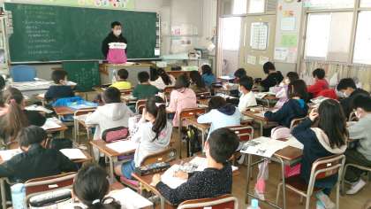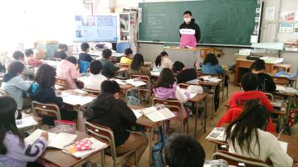 コンビニエンスストアとスーパーマーケットとの違いについて学習しました。お客さんや商品、営業時間などから特徴を話し合っています。