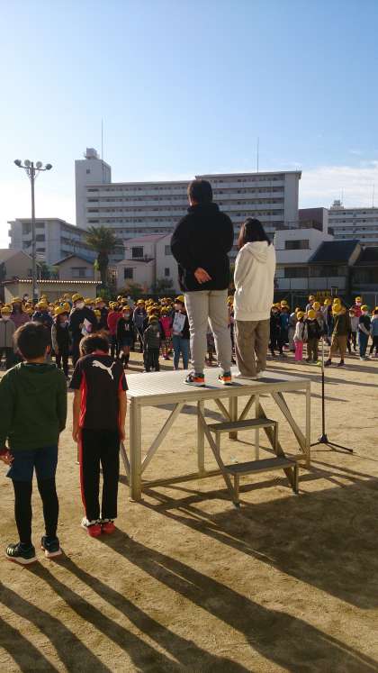 朝、児童集会がありました。動物の名前で、その言葉の数だけの人数が集まるゲームです。集会委員会の子どもたちは、みんなが楽しめるように毎回工夫して活動しています。