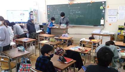 グループの平均から全体の平均を求める学習をしました。全体の合計と全体の人数を求めてから平均を求める考え方を学んでいます。