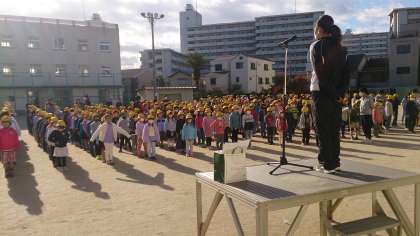 児童朝会で、大阪市学生科学賞と4年生のソフトボールチームの準優勝の表彰がありました。科学賞は、受賞した4〜6年生各一名ずつに表彰状を手渡しました。下の写真は、ソフトボールチームの盾と表彰状です。みんなよく頑張りました。