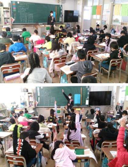 九九の学習をしました。九のだんの九九をつくろうという課題に、積極的に発表しています。