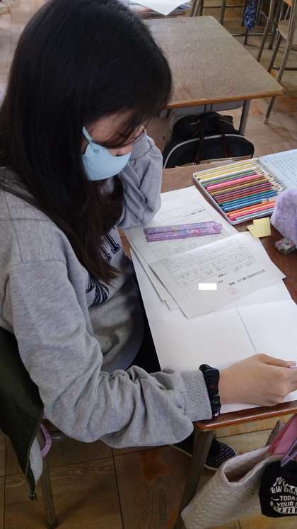 説明文「和の文化を受け継ぐ」の学習をしています。インターネットで調べた日本刀や着物など、自分の興味のある和の文化についてまとめています。