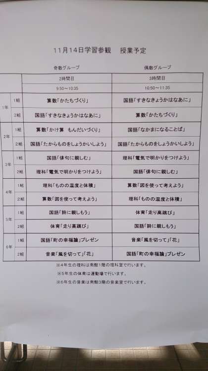 学習参観の予定と作品展の各学年のタイトルを写真で掲載しました。保護者の皆様方のご来校をお待ちしております。
