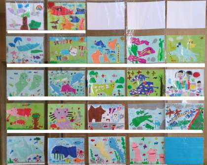 本日は、学習参観・作品展でのご来校ありがとうございました。作品は、16日(月)、1〜3時間目に公開していますので、ご都合で来れなかった保護者の皆様には、ご来校いただければと思います。よろしくお願いいたします。写真は、1年生の作品です。