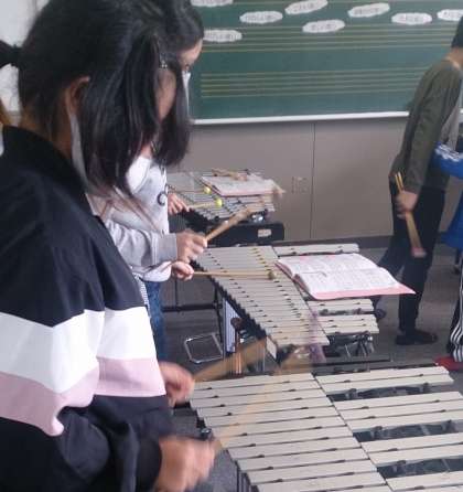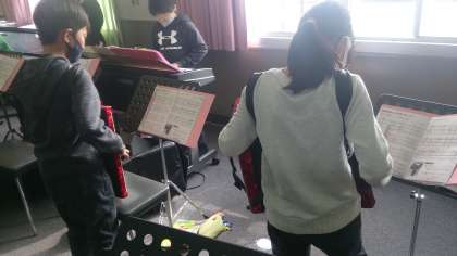 器楽演奏の練習をしました。鉄琴、木琴、アコーディオン、ピアノなど、それぞれのパートを一生懸命練習しています。