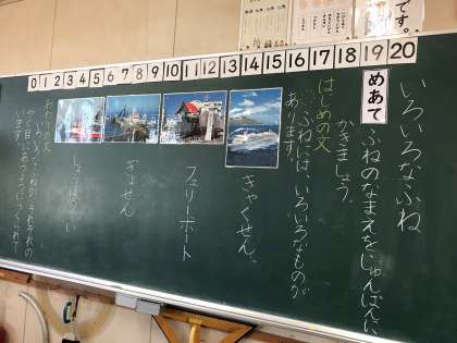 「いろいろなふね」の学習をしました。でてきた順番にふねの名前を書きました。はじめの文とおわりの文も見つけることができました。
