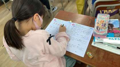 九九のまとめをしています。九九はこれからの学習に重要になってきます。ご家庭でもすらすらと暗唱できるか確認してあげてください。