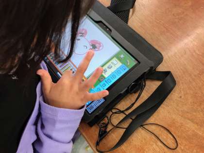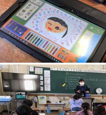 タブレット端末を使う学習をしました。ログオンの仕方を学習した後、ピクチャーキッズというアプリを使ってお絵描きをしました。