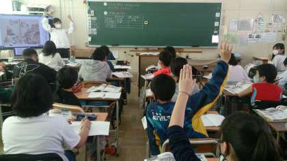 公開授業がありました。江戸時代から明治時代の変化について、資料を比べて調べていきました。子どもたちは、とても積極的に調べて発表していました。
