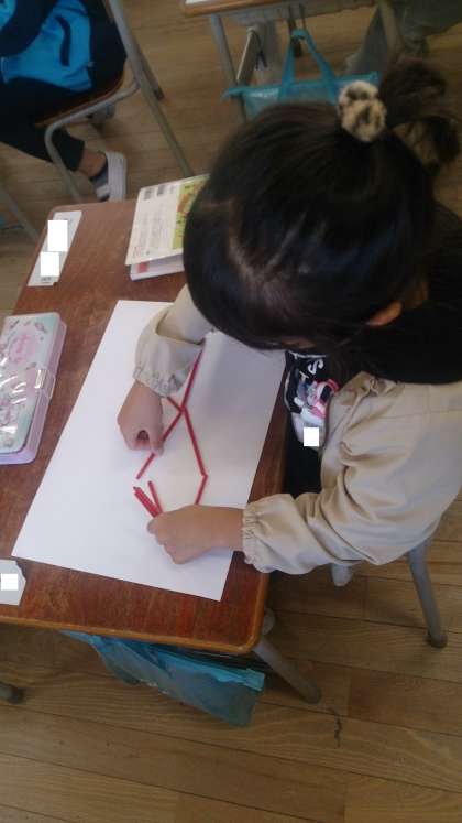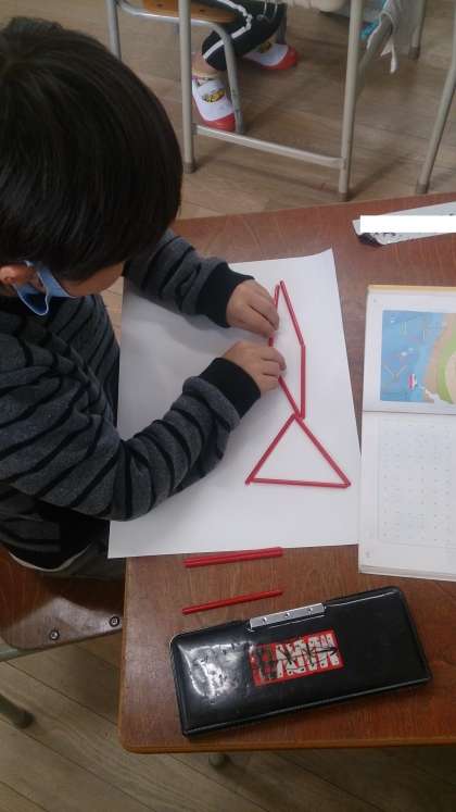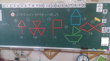 かたちをつくる学習をしました。ものの形にから、数えぼうで形をつくる学習活動です。いろいろな形を作っています。
