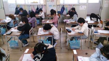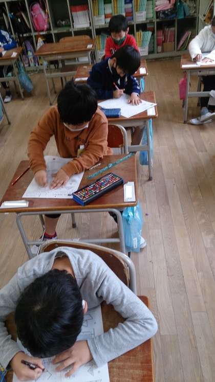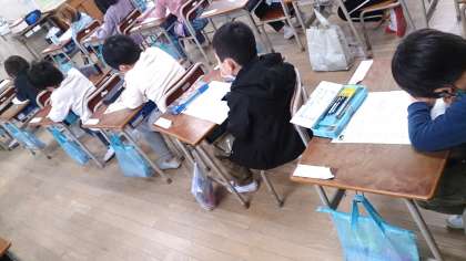 学習のまとめのテストをしました。みんな真剣に取り組んでいます。